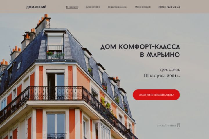 Главный экран лендинга для ЖК