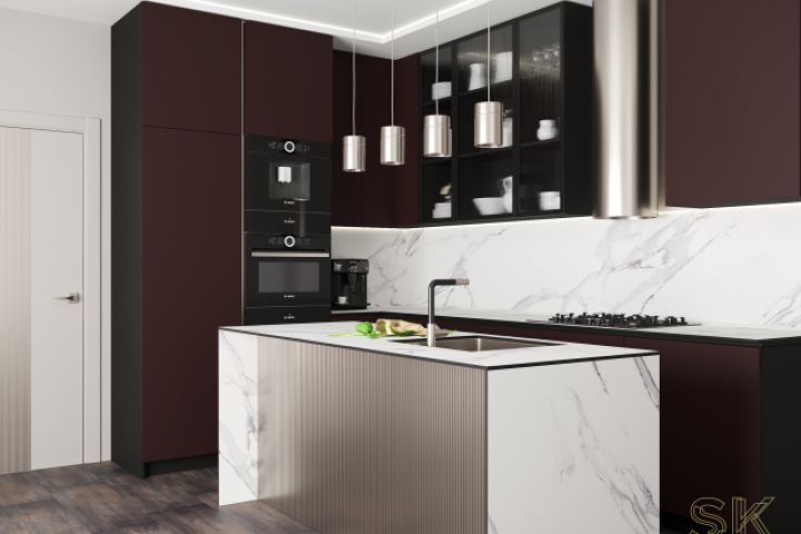 Данный проект был выполнен за 7 дней, заказчик предоставил план помещения и схему размещения кухни с островом. Данный проект очень понравился заказчику и мы сотрудничаем до сих пор.