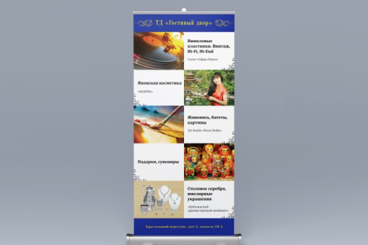 Настенный баннер для владельцев пяти магазинов, располагающихся в ТЦ "Гостиный двор".