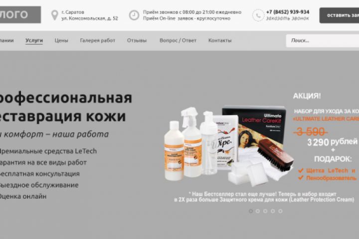 Фирма ZapahaNet. Тут страница услуг о реставрации кожи. Выполнена в виде лендинга.