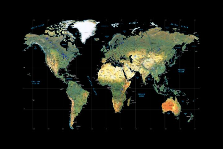 Карта мира в векторе. CorelDRAW, Adobe Illustrator, PDF со слоями. Размер ~500х800 мм. Языки - русский и английский.