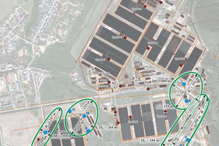 Территория предприятия, наложенная на космический снимок местности