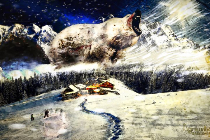 Необходимо было отобразить защитника небольшой деревушки в горах.
