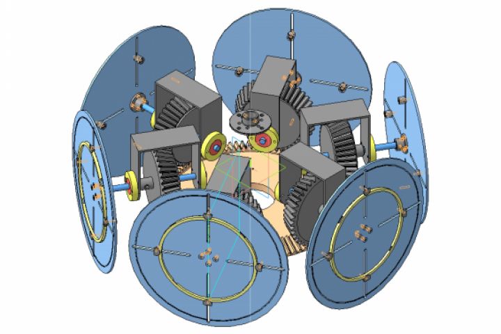 Планетарная карусель предназначена для вращения подложкодержателя с подложкой по двум осям. Состоит из: коническое колесо (м2); конические шестерни (м2); вттулки подшипников; подшипники; кронштейн; ось; подложка с баянетным соединением; оправка; пружинные прижимы.