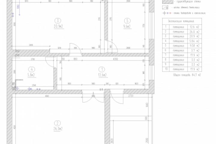 План обмерочный по фактическим размерам помещения с экспликацией помещений