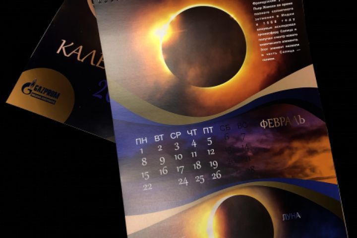 Печать и тиснение логоттипа, сборка календаря на пружину.