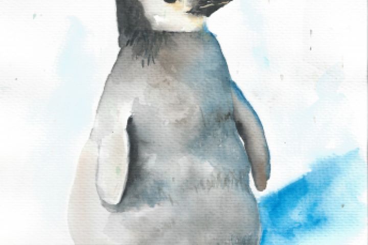 Иллюстрация акварельная Пингвин выполнена от руки на бумаге в технике скетчинга (быстрой зарисовки)