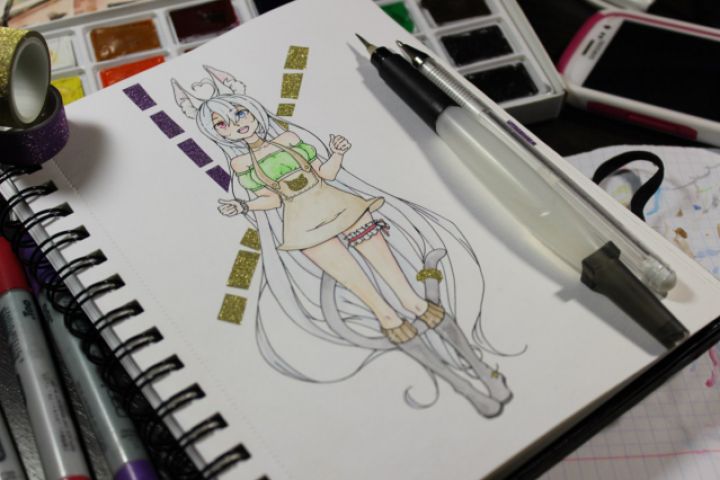 Рисунок на бумаге, который отправляется по почте. Выполнено акварелью.