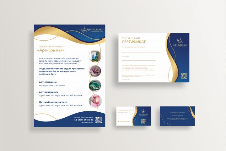 Логотип, фирменный стиль, макеты полиграфии для художественной студии "Арт - Крылья"