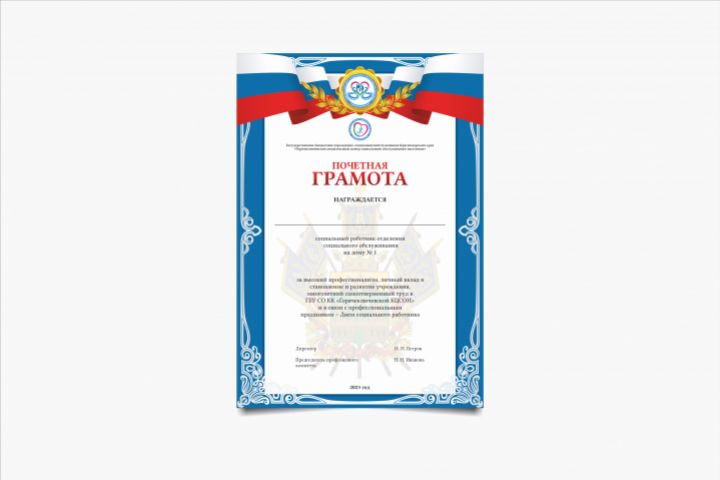 Почетная грамота для центра социального обслуживания ко дню соц работника.