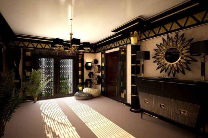 Проект выполнен в стиле арт-деко с элементами этники (египетский стиль)