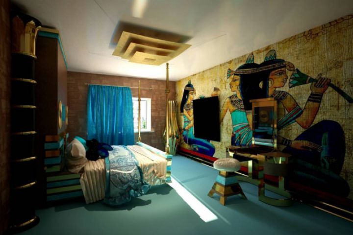 Проект выполнен в стиле арт-деко с элементами этники (египетский стиль)