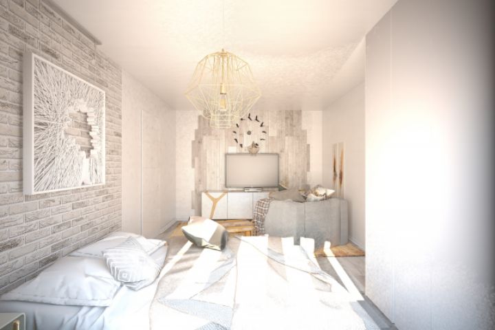 Проект выполнен в скандинавском стиле. Учитывая габариты помещения - минимализм Цветовая гамма - белый, серый, теплые акценты рыжего. Материалы - краска, дерево