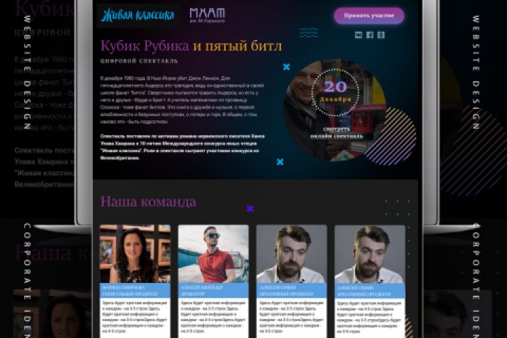 Создание лендинга Цифровой спектакль , фонд Живая класика и Мхат им Горького, при использовании Гранда Министерства Просвещения Российской Федерации. От Дизайна до размещения на хостинге.