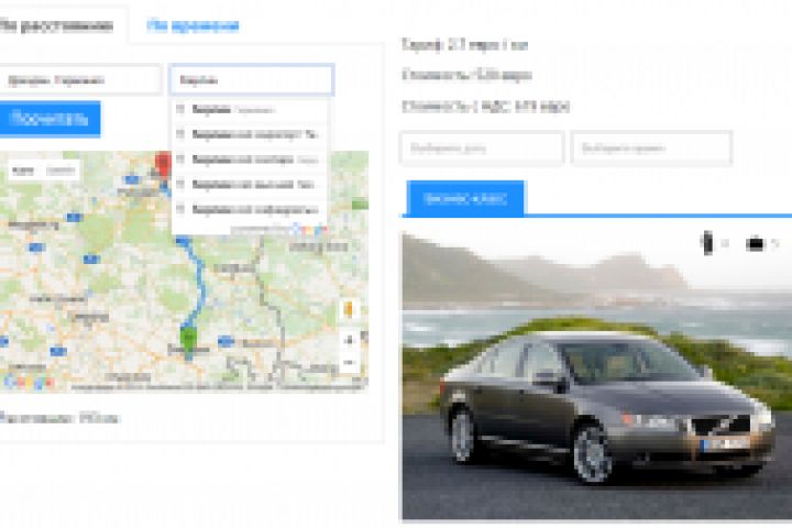 Калькулятор стоимости такси с отрисовкой на Гугл Карте