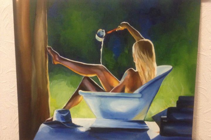 Картина акрилом на холсте "Девушка в ванне"