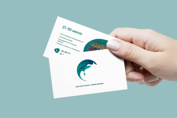 Разработка визитных карт, входящая в пакет айдентики для детского лагеря "Hовая волнa"