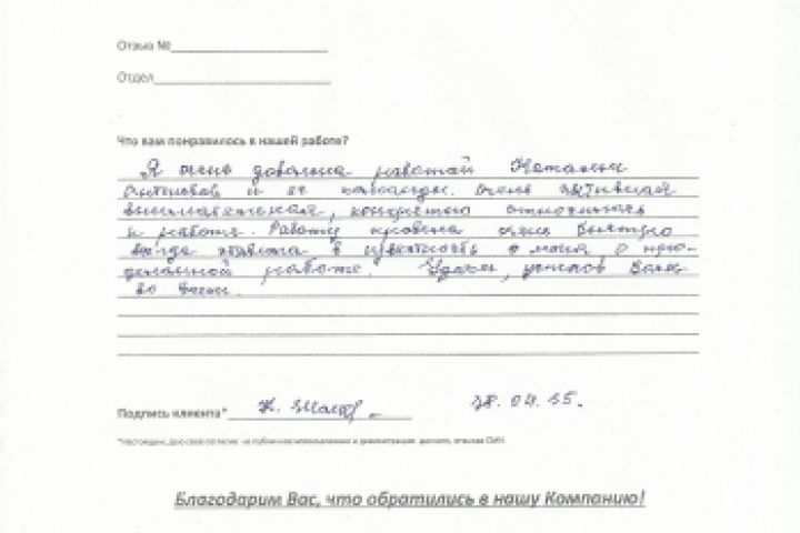 Отзыв о работе от Исаевой Татьяны, апрель 2020