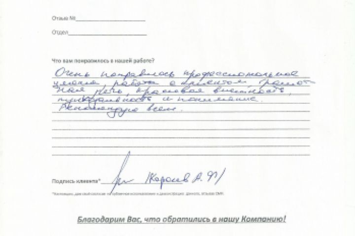 Отзыв о моей работе, июль 2018