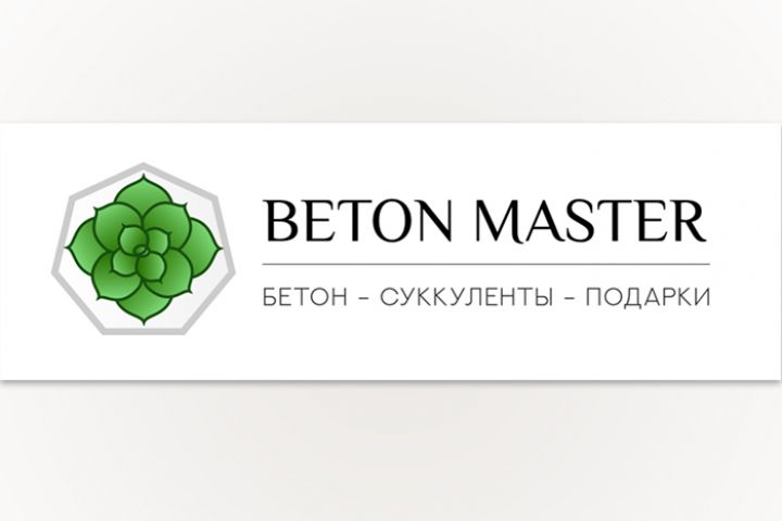 Разработка логотипа для мастерской бетонных изделий BETON MASTER. Данная мастерская занимается созданием кашпо и ваз, сувениров и аксессуаров из бетона, а также продажей суккулентов.
