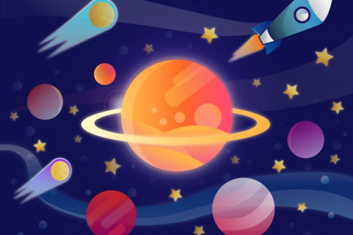 Векторная иллюстрация на тему космоса, созданная в Adobe Illustrator