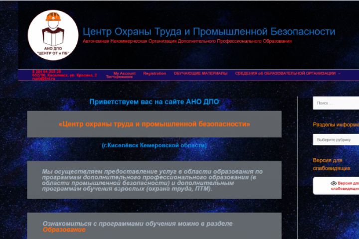 К нам обратился руководитель Центра охраны труда и промышленной безопасности. Требовался сайт для размещения информационных материалов и проведения онлайн-тестирования слушателей курсов. Необходимо было предложить простое и недорогое решение, администрировать которое смогут работники заказчика без привлечения разработчиков. Была выбрана и установлена CMS WordPress, для проведения тестирования, на сайт интегрированы Google-таблицы, проведено обучение сотрудника заказчика.