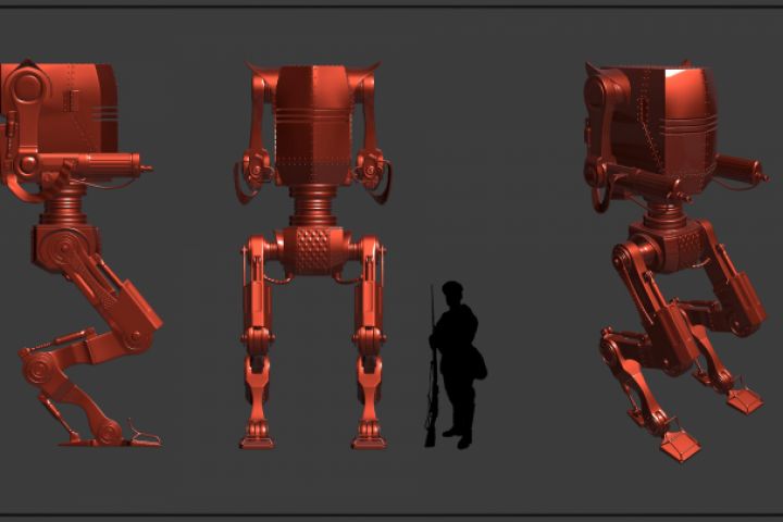 Высокополигональная модель меха, стилизованного под перид первой мировой войны.