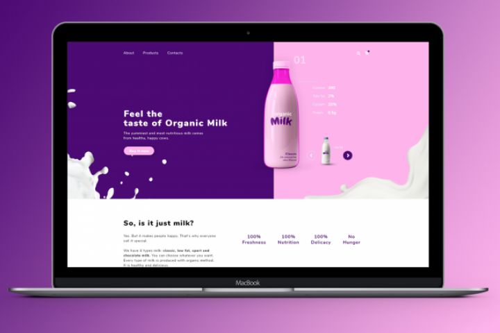 Маленький, но яркий лендинг для компании, которая выходит на рынок "Organic Milk". Дизайн + вёрстка, без адаптива.