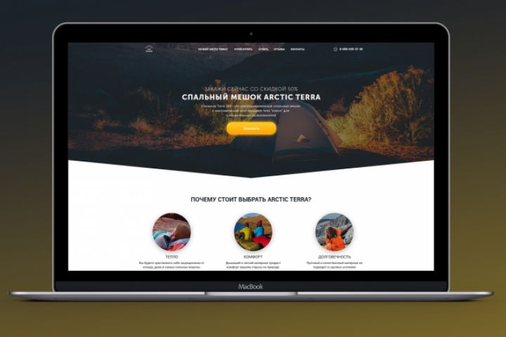 Лендинг с целью рекламы нового продукта - Спальника Terra 300.