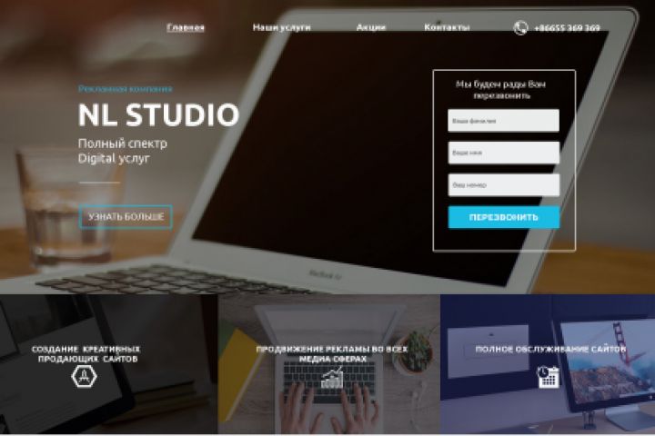 Данный сайт визитка отображает все услуги и данные компании кратко, лаконично и красиво.