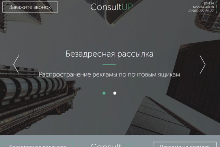 Верстка сайта рекламной компании ConsultUP Верстка: адаптивная, отзывчивая, кросс-браузерная, кросс-платформенная. Технологии: HTML5, CSS3, Javascript, jQuery, PHP, NodeJs, gulp