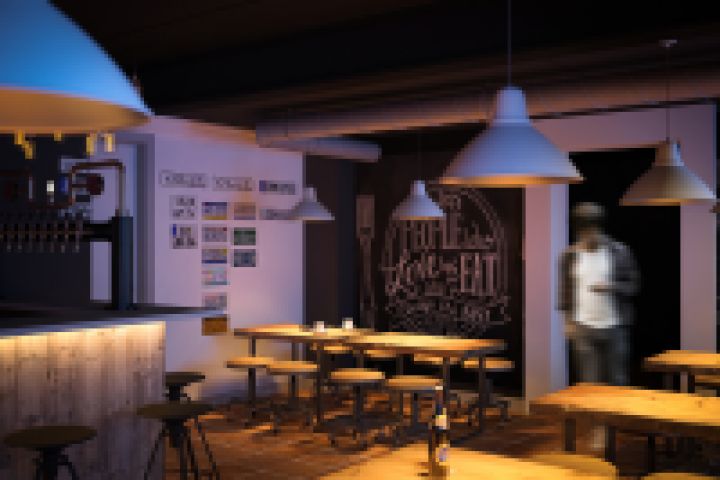 Небольшой лофт-бар в подвальном помещении.