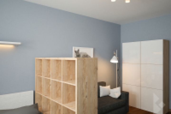 Бюджетный вариант совмещения спальной и гостиной с использованием мебели Икеа.