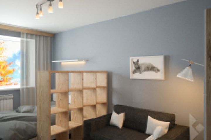 Бюджетный вариант совмещения спальной и гостиной с использованием мебели Икеа.