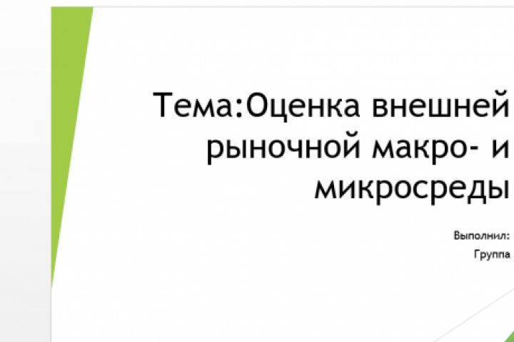 Презентация по докладу на тему: Тема:Оценка внешней рыночной макро- и микросреды