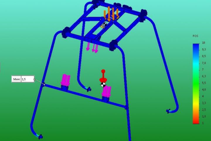 Проверочный расчет на прочность конструкции аттракциона-симулятора Exo-Plane 1.5 с оформлением пояснительной записки. Дата выполнения работ: 01.2019. Заказчик: ООО "Гейм Системс", г. Москва
