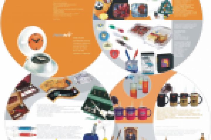 Буклет сувенирной продукции. В развороте - круг, один горизонтальный биг. Каждый тематический разворот с индивидуальным дизайном.
