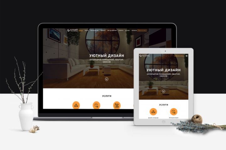 Лендинг для студии дизайна интерьера, дизайн представлен в десктопной, планшетной и мобильной версиях. Проект отдан верстальщику.