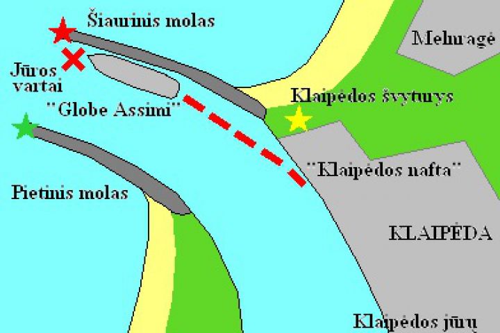 "Globe Assimi" Crude Oil Tanker's Disaster in Klaipeda 1982 Map