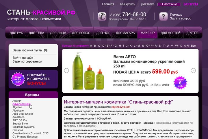 Дизайн интернет магазина косметики