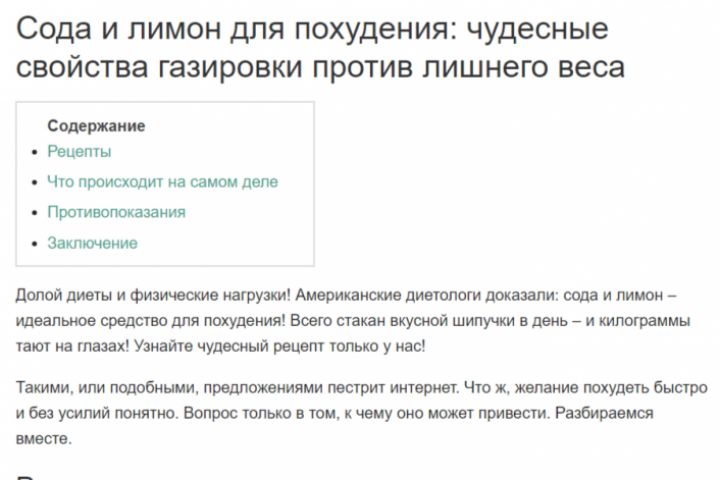 Статья для портала, посвященному популярным методам снижения веса. Подробный разбор заблуждения о том что лимон с содой помогают худеть.