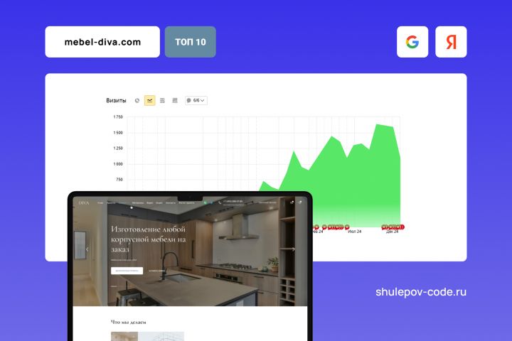 SEO-продвижение DIVA - они занимаются продажей мебели уже несколько лет, благодаря этому накопили большой опыт. Работают «под ключ» и сопровождают заказ на всех этапах производства. При запросе скину полную статистику и подробный план работ.