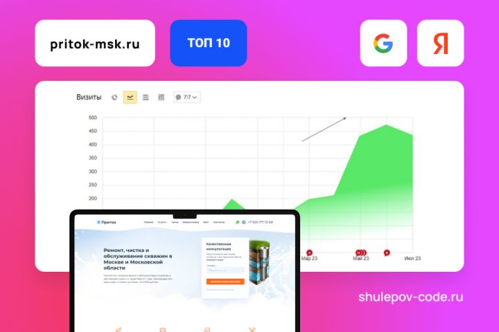 С подробным описанием работ и результатов Вы можете ознакомиться по ссылке https://shulepov-code.ru/portfolio/pritok/