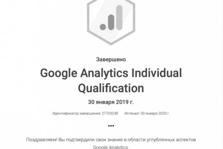 Сертификат - Основы Google рекламы. Проверить можно по номеру.