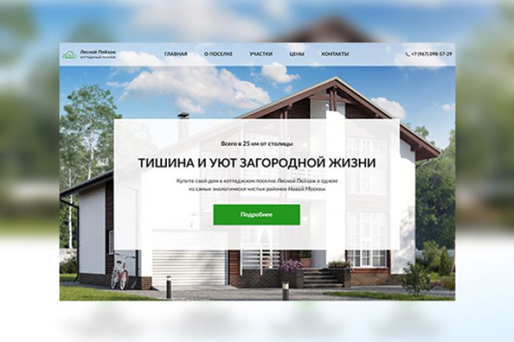 Landing Page для компании, реализующей участки и дома в коттеджном поселке Лесной Пейзаж. Задачей было создать легкий экологичный сайт.