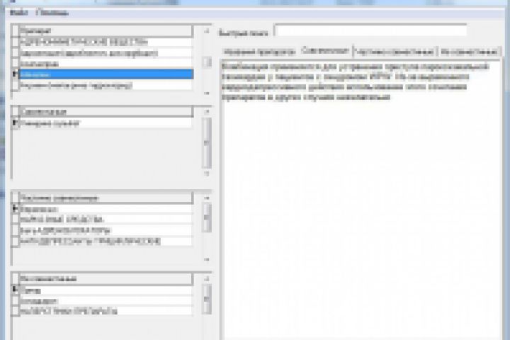 Справочная система проверки совместимости лекарственных средств друг с другом. Выводит краткую справку по препаратам. Реализована система поиска.