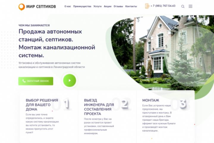 Разработка лендинга "Мир септиков" "под ключ", бюджетный вариант изготовления 5 т.р.