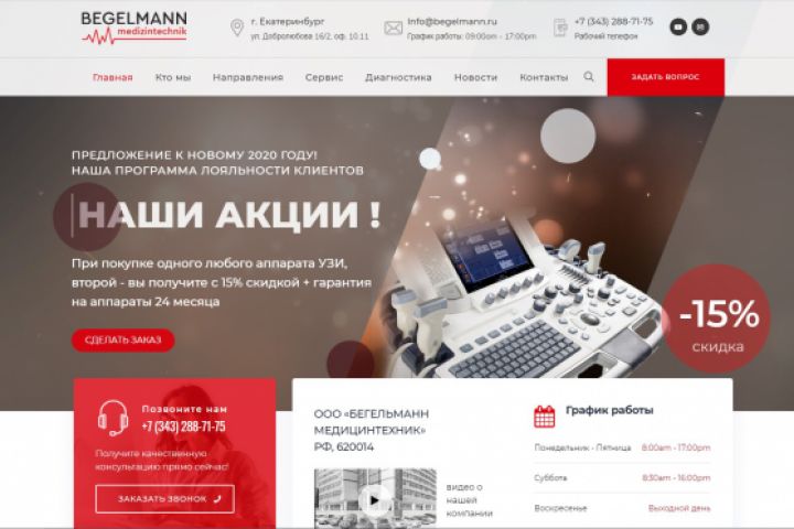 Мед. оборудование Бегельманн-Медтехник "сайт под ключ", функционал, создание рекламный банеров на слайдер, сам слайдер