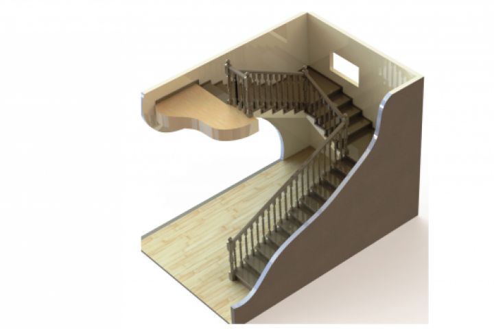 Нужно было разработать 3d модель, чертежи, СБ, а также сделать визуализацию угловой лестницы.