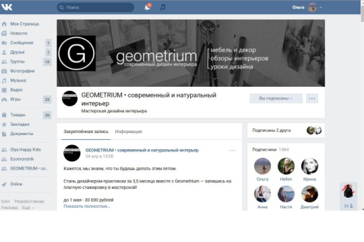 Оформление группы в фейсбуке и контакте для дизайнеров интерьера
